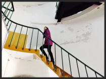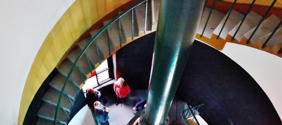 The lighthouse has 100 sturdy steps to the top of the lighthouse and a wonderful view from the top. The stairs do get progressively steeper and narrower nearer the top. For safety reasons children under 1 metre are not allowed to ascend the lighthouse. Children must not be carried up and down the stairs due to the low banisters and the steepness of the climb.